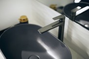 大きなキッチンは、リビングダイニングにいる家族や友人と空間を共有できるオープン設計。最初はアイランド型を考えていたそうですが、マンションの管理規約でパイプスペースやガス管の位置を変更できなかったためペニンシュラ型に。キッチンの前面にはダイニングテーブルとしても使うことができるカウンターを造作しました。テーブルに料理を運ぶ手間が省けて家事動線の短縮になるため、お子さんと食事する際はカウンターが大活躍しているそう。海外メーカー「ミーレ」の巨大食洗機とビルトインオーブン、「ガゲナウ」のバーベキューグリル、4口コンロ、浄水器付き水栓、傷や汚れに強いシーザーストーンの天板を採用するなど、デザインだけでなく機能面にもこだわりが詰まっています。