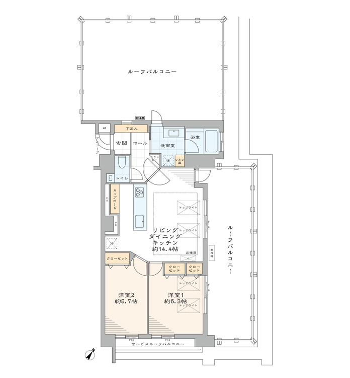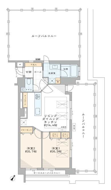- バルコニー面積64.29(ルーフバルコニー) ㎡