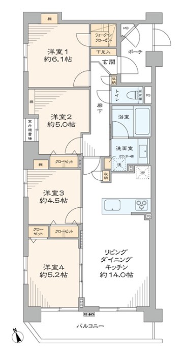 専有面積75m²超・収納豊富な4LDK+2WIC