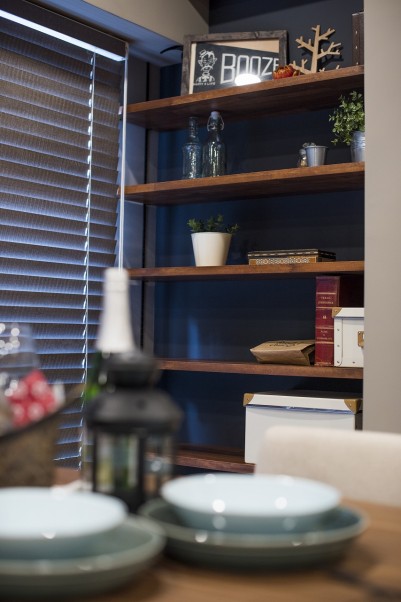 オークの無垢材と黒いフレームがインテリアにマッチします。