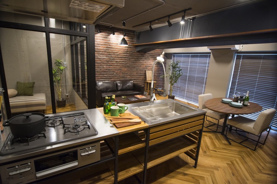 モルタルの壁と合わせて男前な印象にしました。