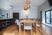 「日中生活する側と、夜、生活する側をキッチリ分けたい点をお伝えしました。東側の部屋をキッチンとリビングにして、プールを挟んで逆側を寝室にしました。陽がリビング側から昇って、寝室側に沈む。東側を日中生活する用にすれば、1日中光が取れますし、かつスペースも広いので、団らんの場にしようと考えました」(Y様)