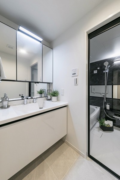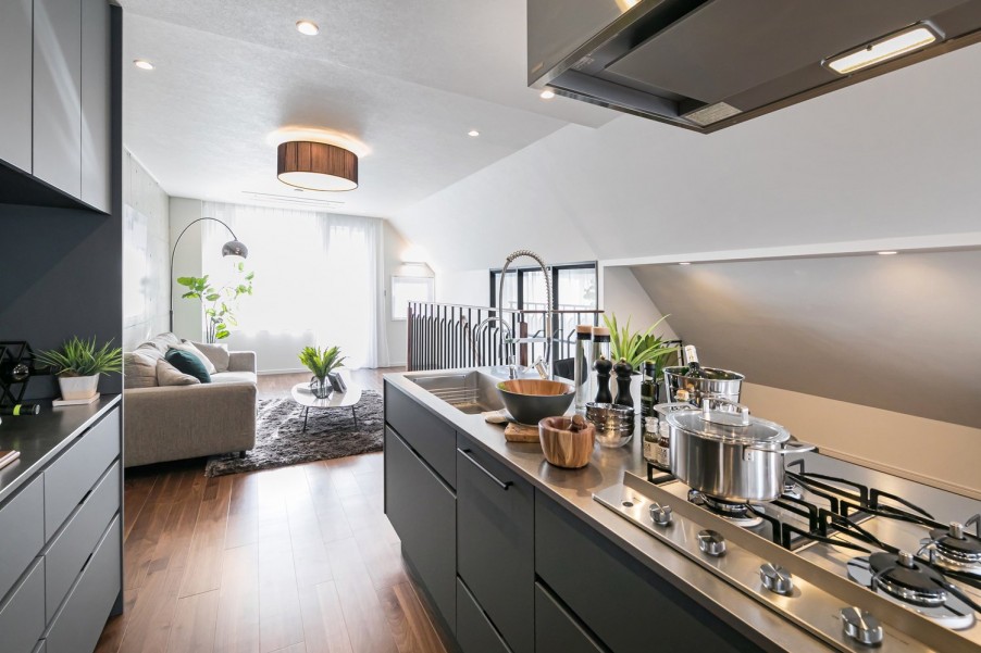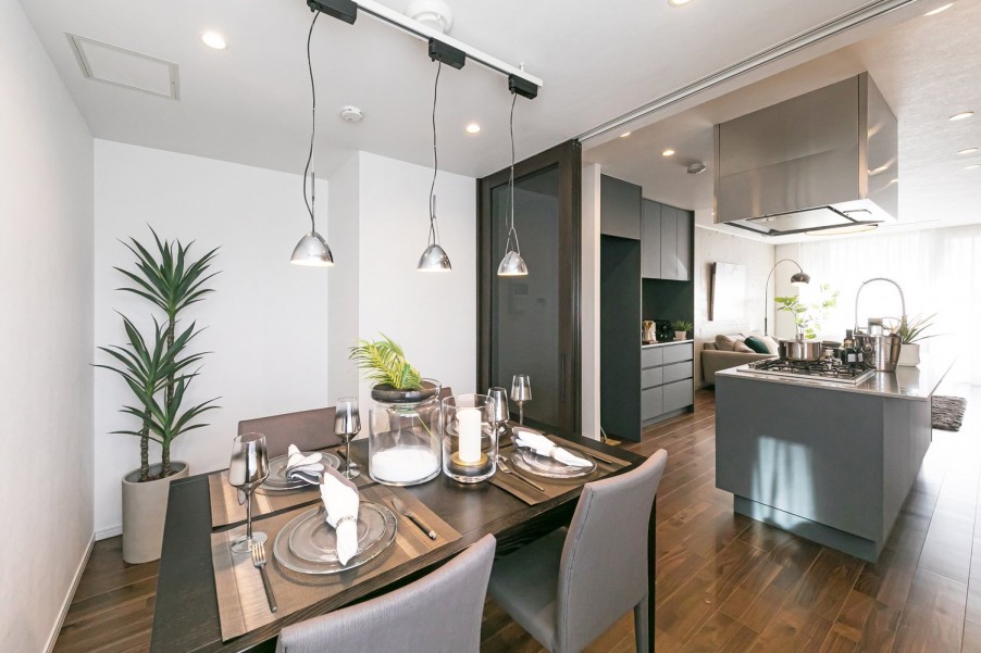 春には川沿いの桜並木が満開になり、通勤や通学、散歩をしながらお花見を楽しめます。 - 2アイランドキッチンが主役のLDK約19.4帖のLDKには、大きなアイランドキッチンと収納量たっぷりのカップボードを備え付けています。