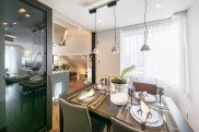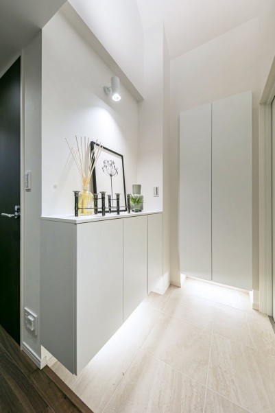 キッチン前にある天井が低く下がったスペース、リノベーション前は物入れでした。この物入れをなくすことで、約19.4帖の広いリビングダイニングが実現しました。