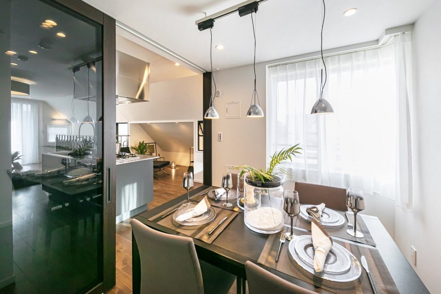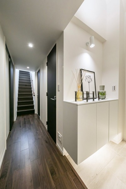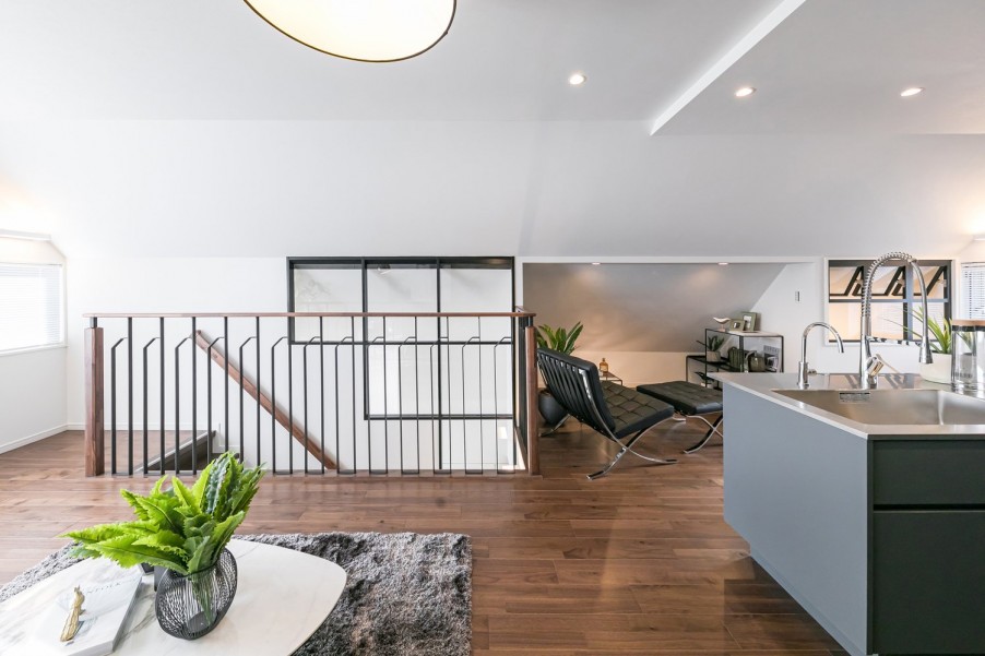 フローリングは、天然木の質感を感じられる突板で、カラーは渋みのあるブラックウォルナットを採用しました。 - 3オンとオフを分けられる、嬉しいメゾネット