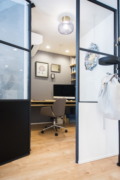 ご主人が元々お一人で10年以上お住まいになっていたマンションの一室を、3LDKから2LDK+WIC+書斎の間取りにフルリノベーションしました。