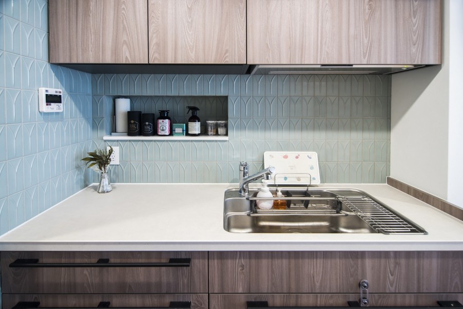 キッチン壁面のタイルは設計士さんがおすすめしてくださって、これだ!と思い決めました。私の姉も家を建てたのですが、偶然にも全く同じタイルを使用していて驚きました(笑)。」(ご主人)