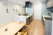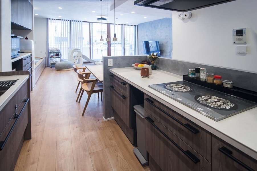 リノベーション後は、リビングダイニングが見渡せる二列型キッチンに設計し、リビングで遊んでいるお子様を見守りながら調理や洗い物などの作業ができるようになりました。