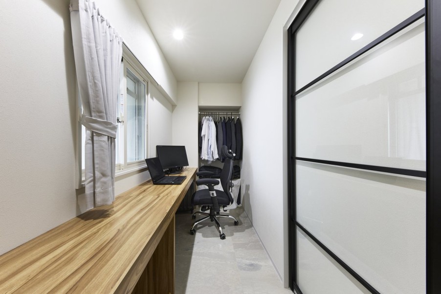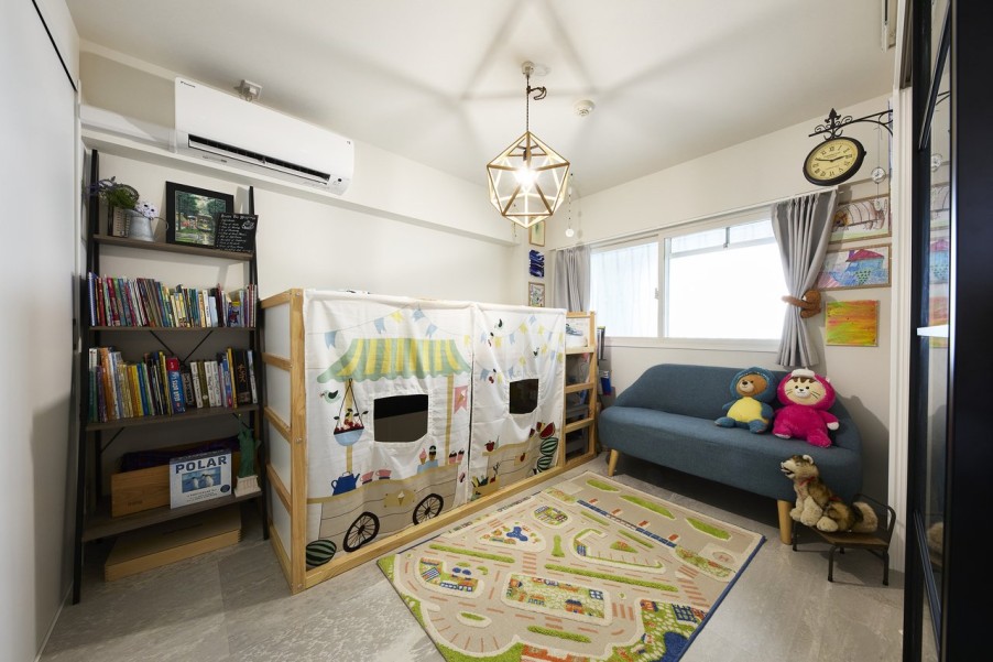 「リノベーションするときに意識したのは、『ここは誰かの場所と固定しないデザインにすること』です。リビングに置いている椅子は、あえてそれぞれ違うデザインのものにしています。そうすることで誰の席と固定せずに、気持ちや都合に合わせて座る場所を変えられるんです。同じように、ワークスペースやダイニングのカウンターも夫のテレワークや私が仕事する場所としてはもちろん、息子が宿題をする場所としても使えるようにしていたり、リビングのソファーは形を自由に変えられるようなデザインにして、家族全員が足を伸ばして座ったり寝転んだりできるようにしています。結果的に、家族がいろいろな場所で動いて暮らしている感じがありますね。個室についても、今はリビングの横にある子ども部屋を、子どもの成長に合わせていずれはもうひとつの洋室に移動することも考えています。」(奥様)