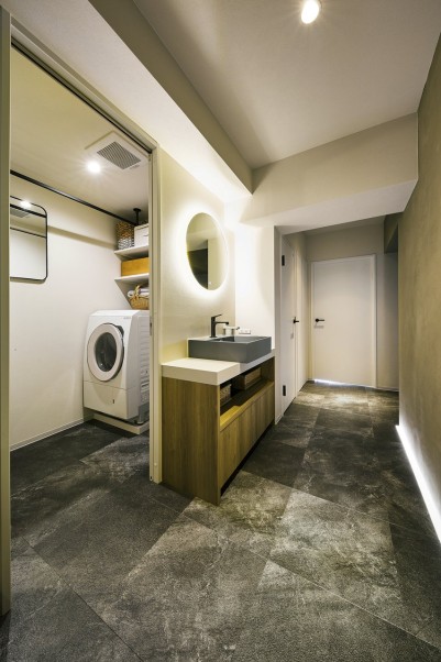 「営業担当の方が、私たちの暮らしと照らし合わせて『それは自分の暮らしに本当に必要?』と問いかけてくださったんです。そのおかげで、私たちの暮らしに本当に必要なものが絞られていきました。次に内装のデザインを考えたときに、『自分たちが歩んできた過去が景色として映し出されて、その過去とともにこれからの未来を暮らしていく。そういう場所になればいいな』と思ったんです。だからこの家は今まで旅した世界中のいろいろな国で見た景色やそこに住む人たちと出会った思い出などの風景が、すべてデザインとして反映された場所なんです。例えば、旅で見た『路地を抜けるとぱっと明るく世界が広がるような光景』をイメージして、リビングに入るとぱっと開けたいろいろな国の風景が感じ取れるように、玄関と廊下は路地のような空間を意識しています。」(奥様) - 3中古マンションだから叶った理想の暮らしお引越しをされた後の気持ちや生活の変化、これからの楽しみについてもお聞きしました。