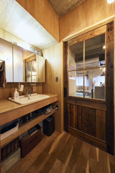 「マイリノを知ったきっかけは、フルスケルトン物件を見学するイベントをインターネットで見つけたことでした。イベントに行ってから、営業担当の方から東大阪エリアの物件をすぐに提案いただいて、内見に行きました。Daigasグループという安心感も決め手となって、マイリノにお願いすることにしました。」(奥様) - 2古材を活用したリノベーション