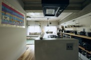 「どうしても使いたかったフロントオープンの食洗機と高火力のコンロを実装してもらいました。国産のフロントオープンの食洗機となるとリンナイの製品だけで、その食洗機を実装できるのが今回採用したTOTOのシステムキッチンでした。夫婦ふたりとも背が高いので、キッチンの天板の高さは90cmにしてもらっています。壁面にはカップボードを造作してもらって、下部には前の家から持ってきたシェルフを置いて食器などを収納しています。キッチンとカップボードの間の通路幅を広めに取り、ふたりがすれ違えるようにしているのもこだわりポイントです。とても使いやすく、広くて動きやすいですね。キッチンの横には、家族で食事ができるようにダイニングテーブルを造作してもらいました。」(ご主人) - 3新しい家族が仲間入り