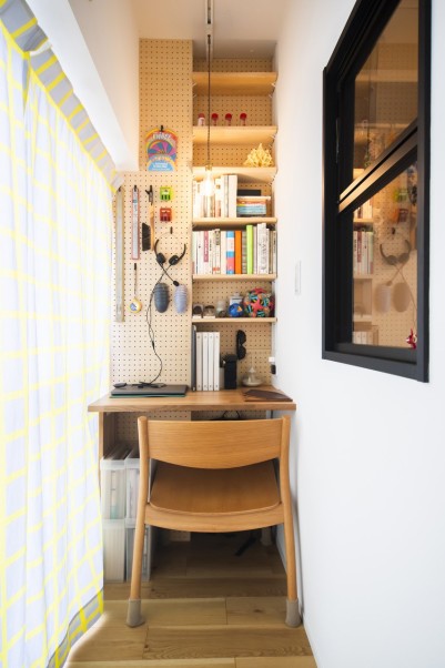洋室の横には、ご主人がWeb会議をするときに使うことを想定してつくったワークスペースがあります。「もともと会議のときだけに使用する予定のスペースでしたが、奥まっていて作業に集中できて、気が付いたら日が暮れていることがあります」とご主人。