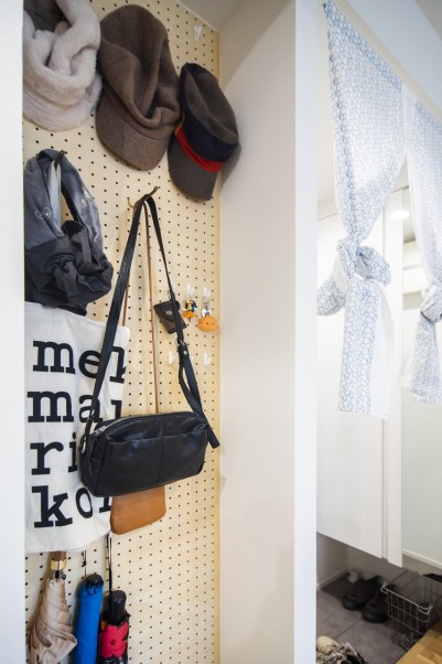 また、ワークスペースや玄関横の壁面に取り付けた有孔ボードにはバッグや帽子、折りたたみ傘などを吊るして、見せる収納やインテリアとして活用しています。 - 3物件購入の前に周辺の雰囲気もチェック最後に、これからお住まい探しやリノベーションしたい方に向けてアドバイスをいただきました。