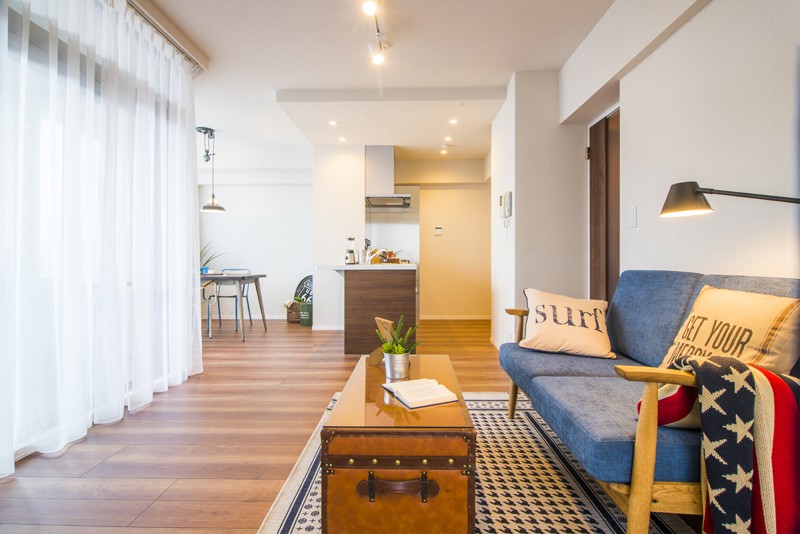- 1広々したLDK独立キッチンの壁を撤去してフラット対面のキッチンを採用し、一体感のあるLDKとして広がりを持たせました。