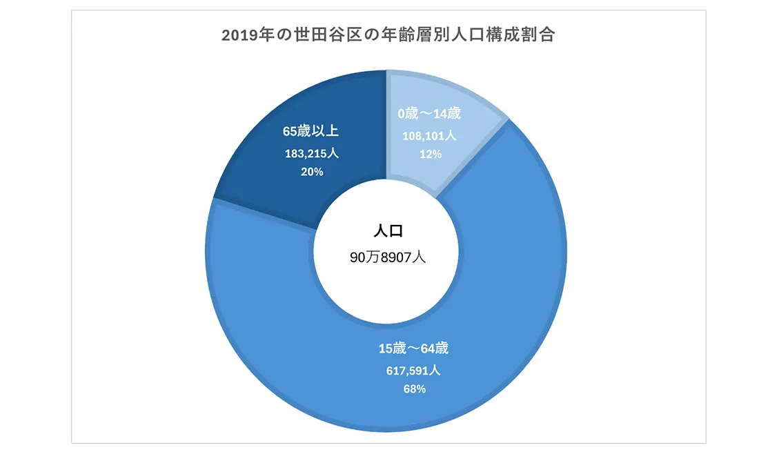 世田谷区は東京都よりも老齢人口の割合がやや低く、老齢化が比較的進んでいないエリアといえます。