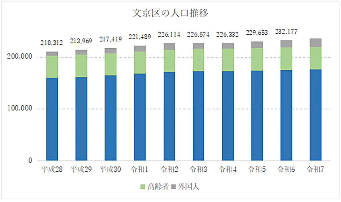 ■【2025年版】文京区の人口:落ち着いた規模の居住環境