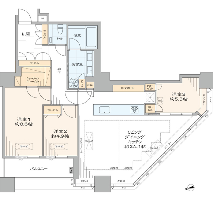 - 構造鉄筋コンクリート造一部鉄骨造地下3階地上42階建26階部分