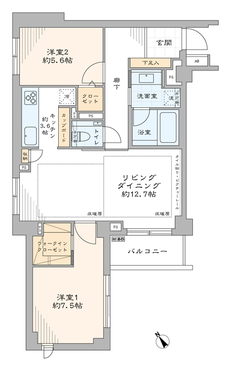 - 間取り2LDK+WIC