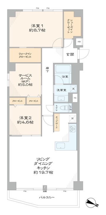- バルコニー面積7.25 ㎡
