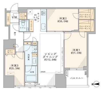 ゆりかもめ『豊洲』駅徒歩6分 - 間取り : 3LDK+2WIC・SIC