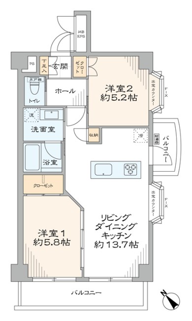 東京メトロ千代田線『千駄木』駅徒歩6分 - 間取り : 2LDK