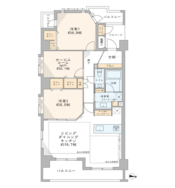 - バルコニー面積9.84 ㎡
