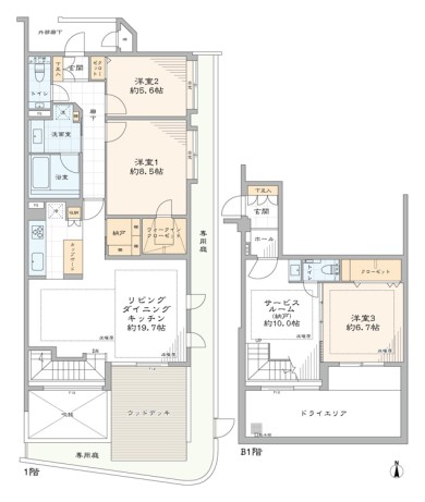 - バルコニー面積22.77 ㎡