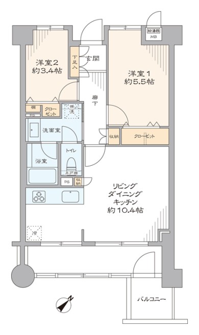 JR根岸線『関内』駅徒歩11分 - 間取り : 2LDK