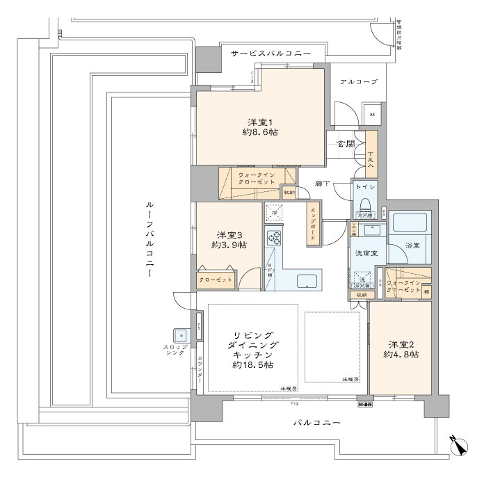 東急池上線『旗の台』駅徒歩14分 - 間取り : 3LDK+2WIC