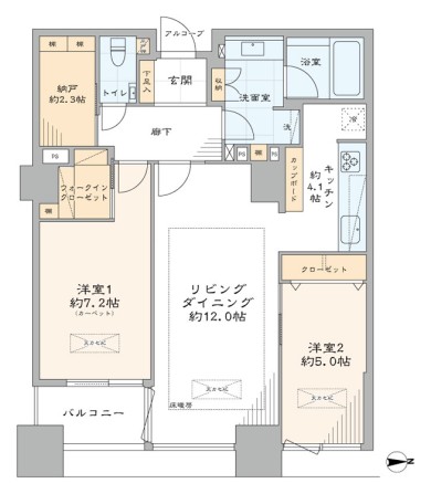 東京メトロ日比谷線『八丁堀』駅徒歩10分 - 間取り : 2LDK+WIC・納戸