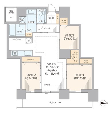JR横須賀線『武蔵小杉』駅徒歩4分 - 間取り : 3LDK+WIC