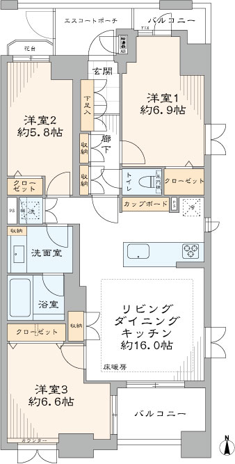 - バルコニー面積7.80 ㎡