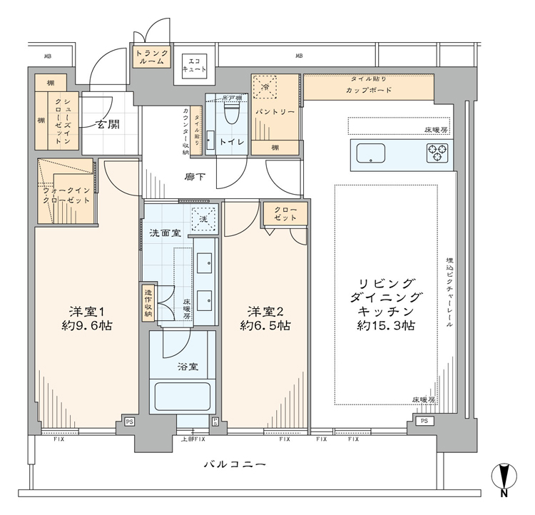東京メトロ有楽町線・都営大江戸線『月島』駅徒歩14分 - 間取り : 2LDK+WIC・SIC