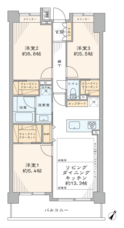 東京メトロ日比谷線・都営浅草線『人形町』駅徒歩10分 - 間取り : 3LDK+3WIC