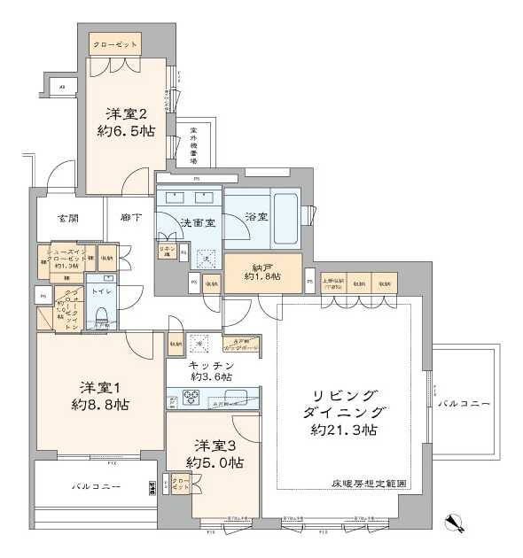 東急田園都市線『池尻大橋』駅徒歩15分 - 間取り : 3LDK+WIC・納戸・SIC