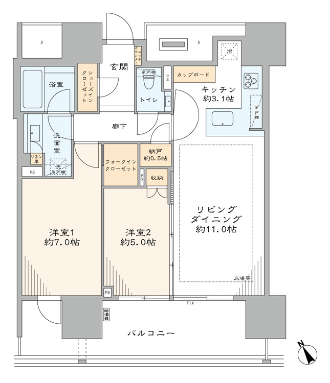 - 間取り2LDK+WIC・SIC