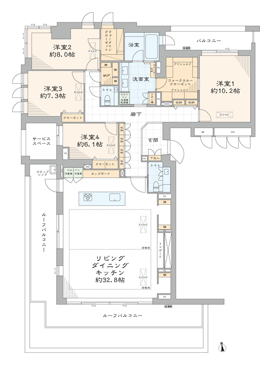 - 間取り : 4LDK+WTC・WIC