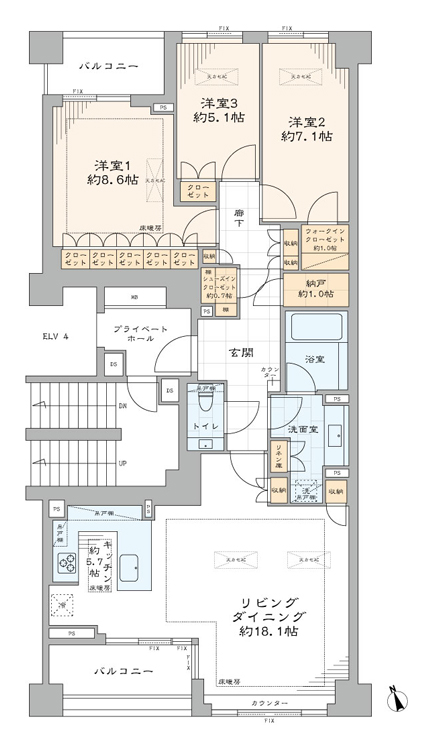 - 間取り : 3LDK+WIC・SIC・納戸