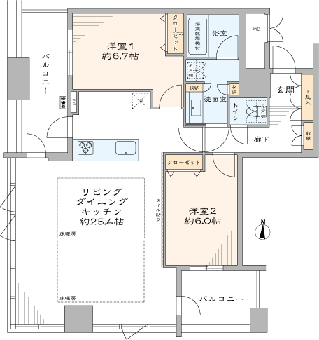 - 専有面積80m²超 LDK約25.4帖