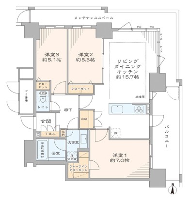 トランクルーム面積 : 0.72m²(専有面積に含む)