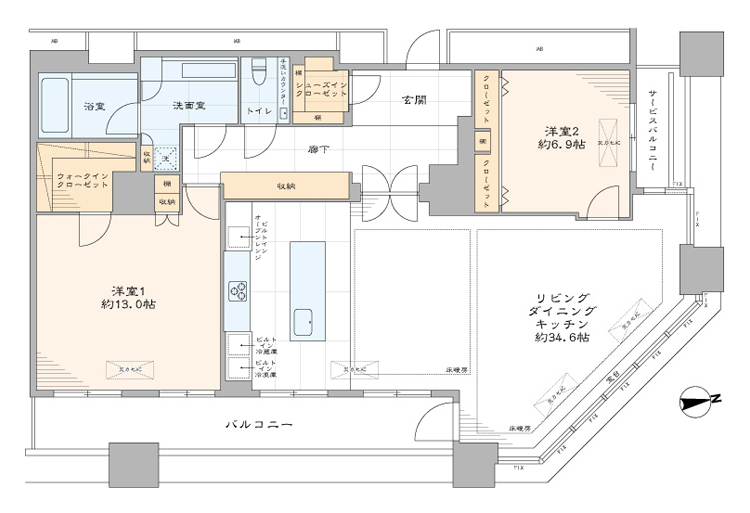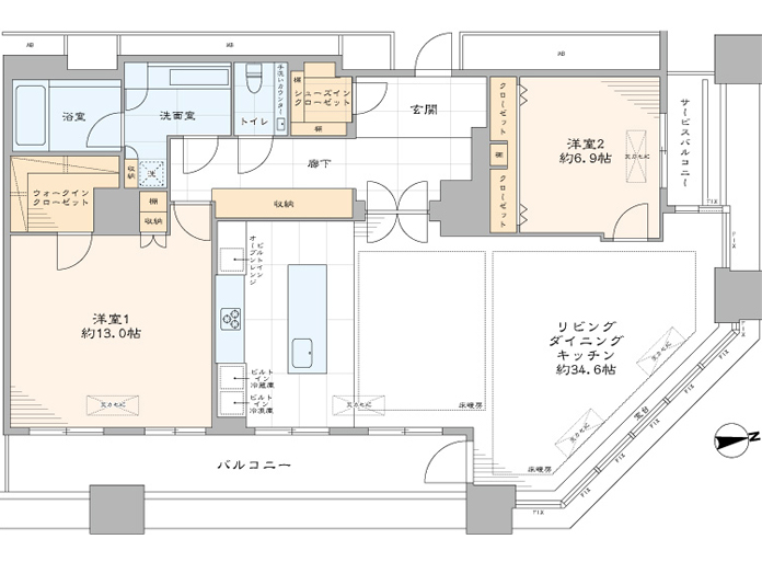 京阪本線『北浜』駅徒歩3分 - 間取り : 2LDK+WIC+SIC
