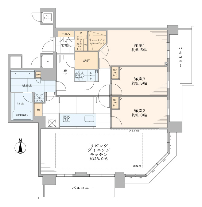 - 間取り3LDK+S( 納戸)・WIC・SIC