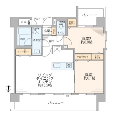 • 専有面積 : 61.55 ㎡