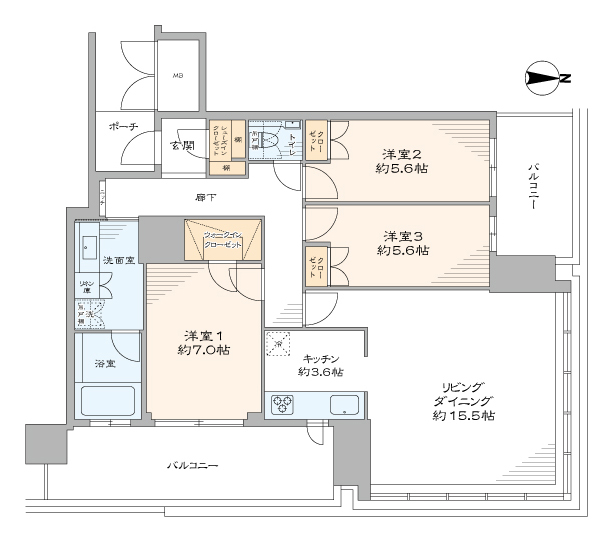 Osaka Metro御堂筋線『本町』駅徒歩9分 - 間取り : 3LDK+WIC・SIC