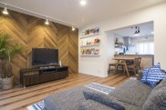 グローバルベイスとの出会いは、たまたまポストに投函されていたチラシがきっかけだったとのこと。「リノベーション済みの物件が売りに出ていたのですが、辻堂のマンションだったので、見学に行きました。木をふんだんに取り入れた内装が本当に素敵で、自分たちが思い描いていたイメージに近かったんです。中でも一目ぼれしてしまったのが、ヘリンボーンの壁です。うちもこんな風にしたい…とイメージが広がりました」(奥様)と当時を振り返ってくれました。