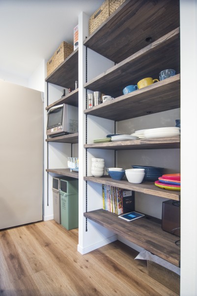 海を感じるものが好きというご夫婦。そういった小物や趣味の本を飾る棚など、見せる収納を随所に取り入れ、まるでカフェのような空間を実現しました。 - 2家族との対話を楽しみながら、作業をすることができるL型のキッチン前の家は炊事をしていると孤立してしまう間取りだったんですが、このキッチンなら家族との対話を楽しみながら、作業をすることができます。白を基調にした壁面も清潔感がありますし、掃除も楽で、とにかく使いやすくて、とても気に入っています