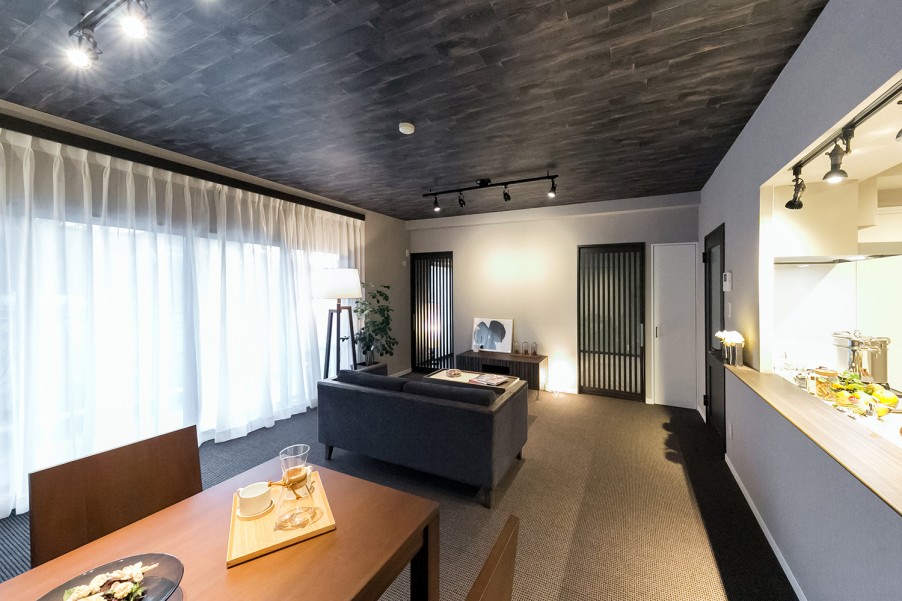- 1回遊できる畳の部屋とリビングは、人がリビングに集まった時、とっても便利。お子様の遊びスペースにも、ご主人憩いのスペースにも何でも部屋に早変わりします和室を造りたいという希望から、旅館をイメージして室内をコーディネート。