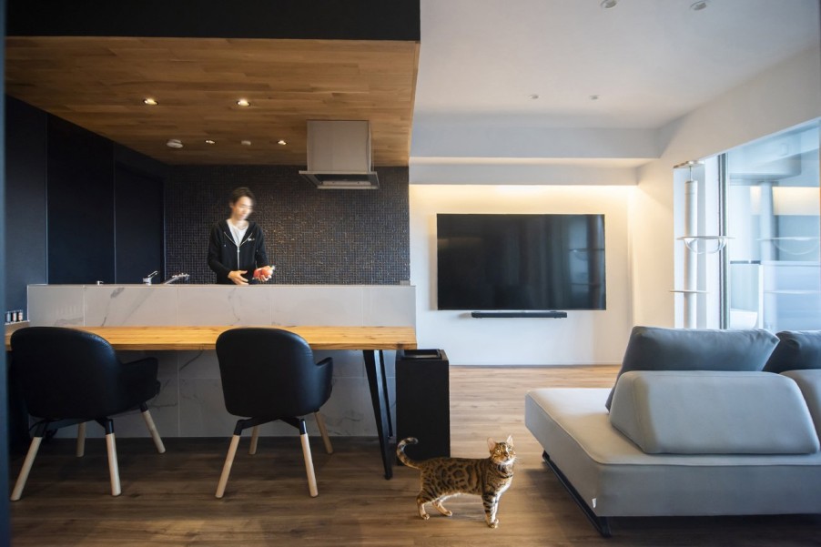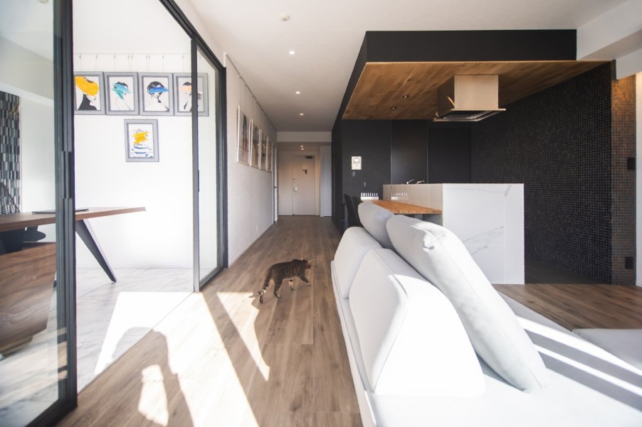 アートギャラリーのように洗練されつつも広々と開放的な空間が完成し、一緒に暮らすリモちゃんも走ったり遊んだり元気いっぱいです。リモちゃんにも外の景色を見せてあげられるようにと、キャットタワーをリビングの窓際に置いているそう。 これからも“今"を楽しみながら、心地よく過ごしていただけたら何よりです。