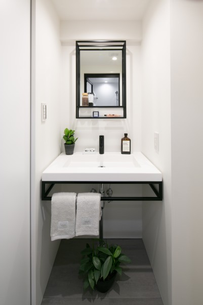 白い壁と引き立て役の黒の絶妙なバランスが空間の美しさをより一層引き立てます。